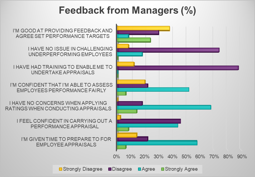 | I feel confident in carrying out a performance appraisal | 8% | 44% | 46% | 2% | 100% |